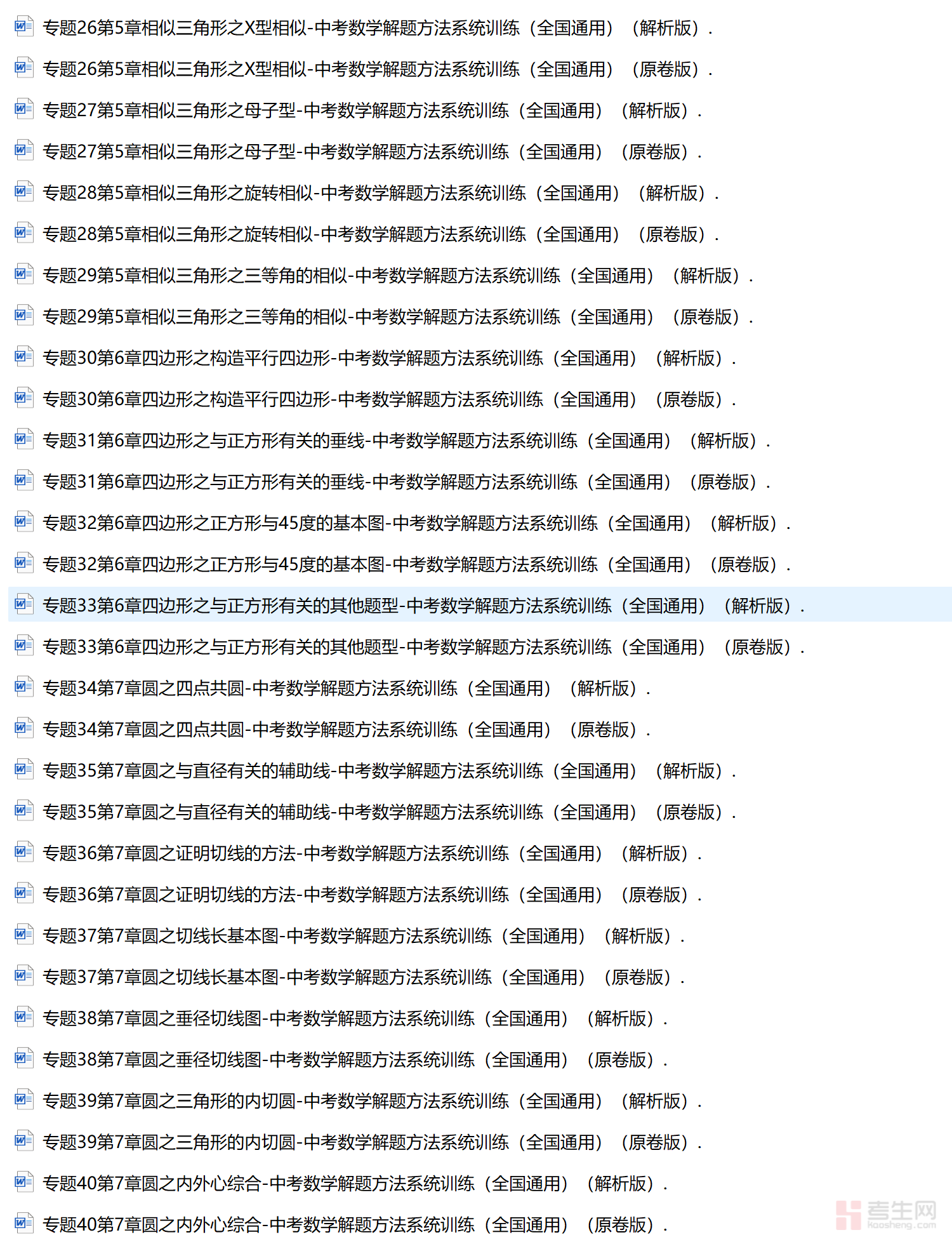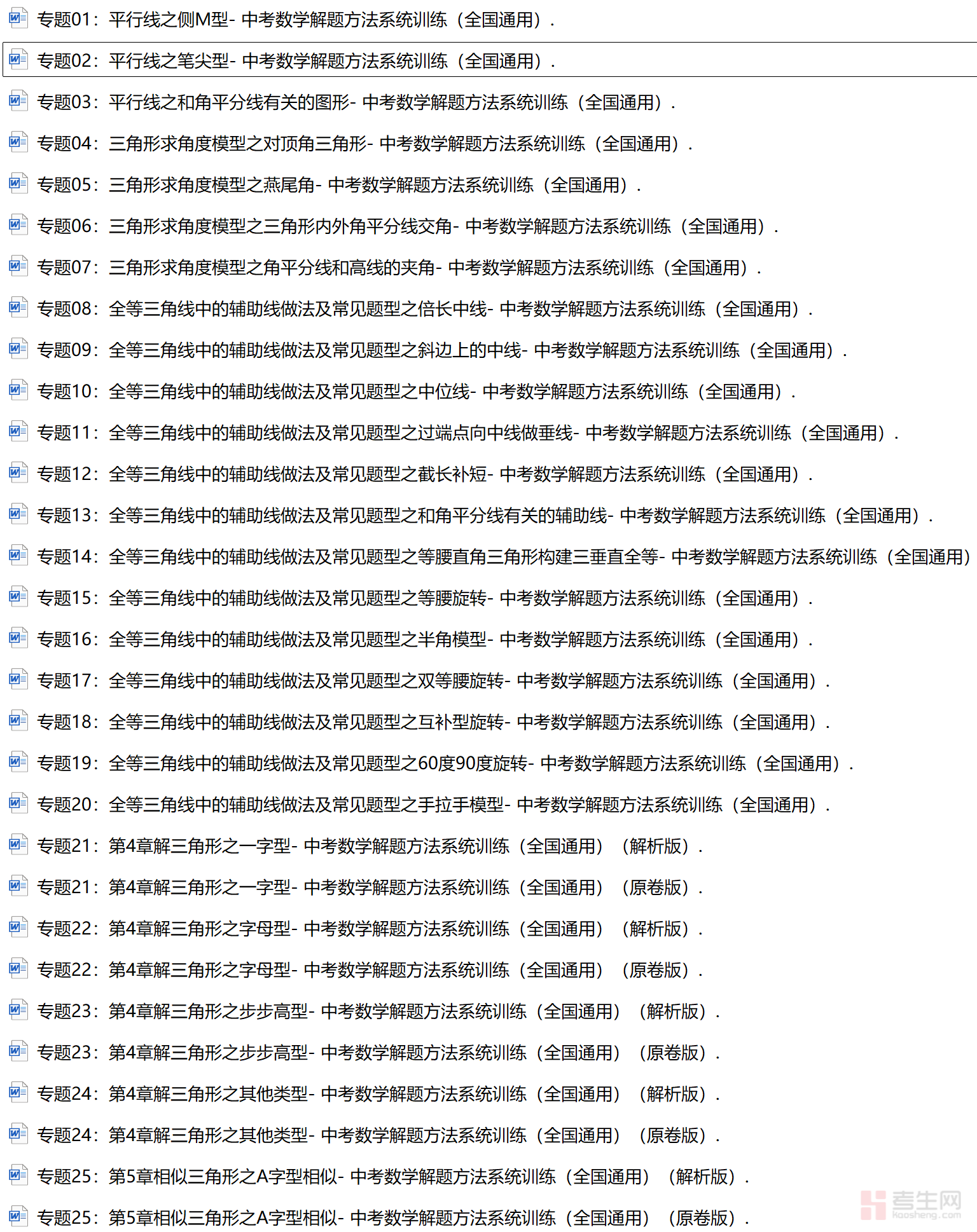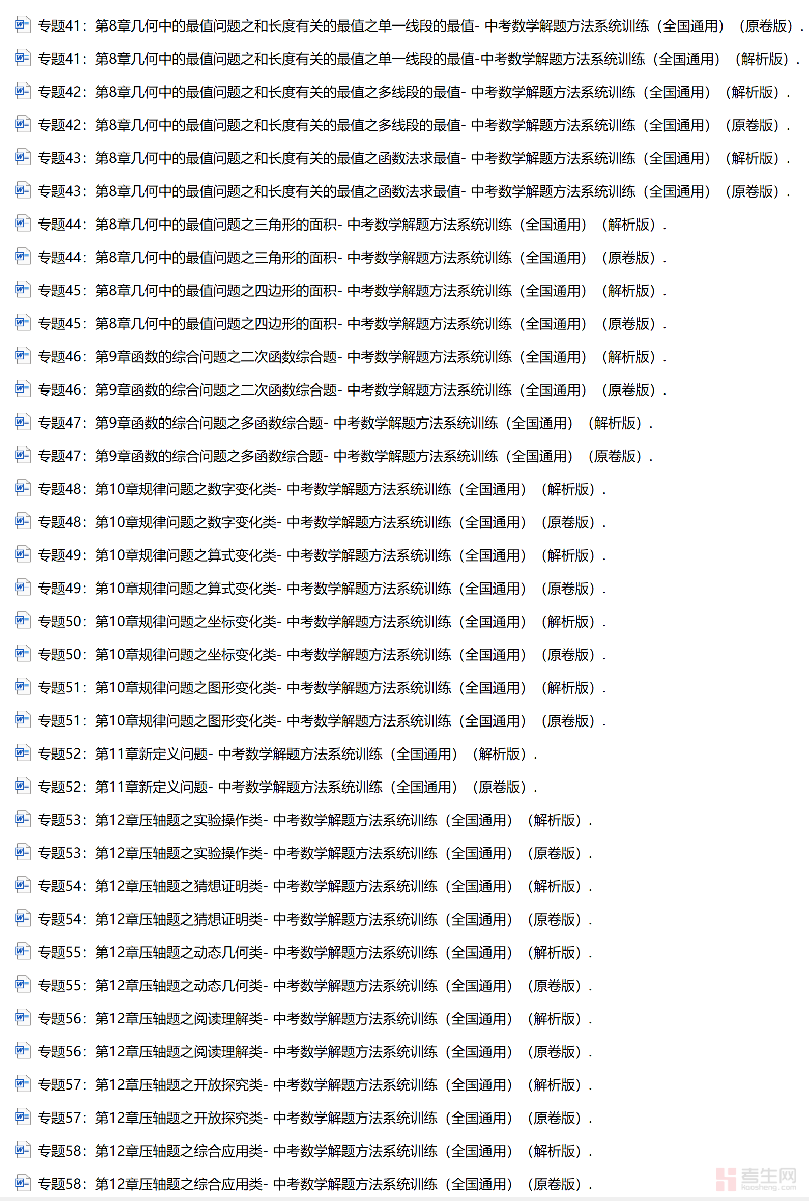 中考数学解题方法系统训练专项题