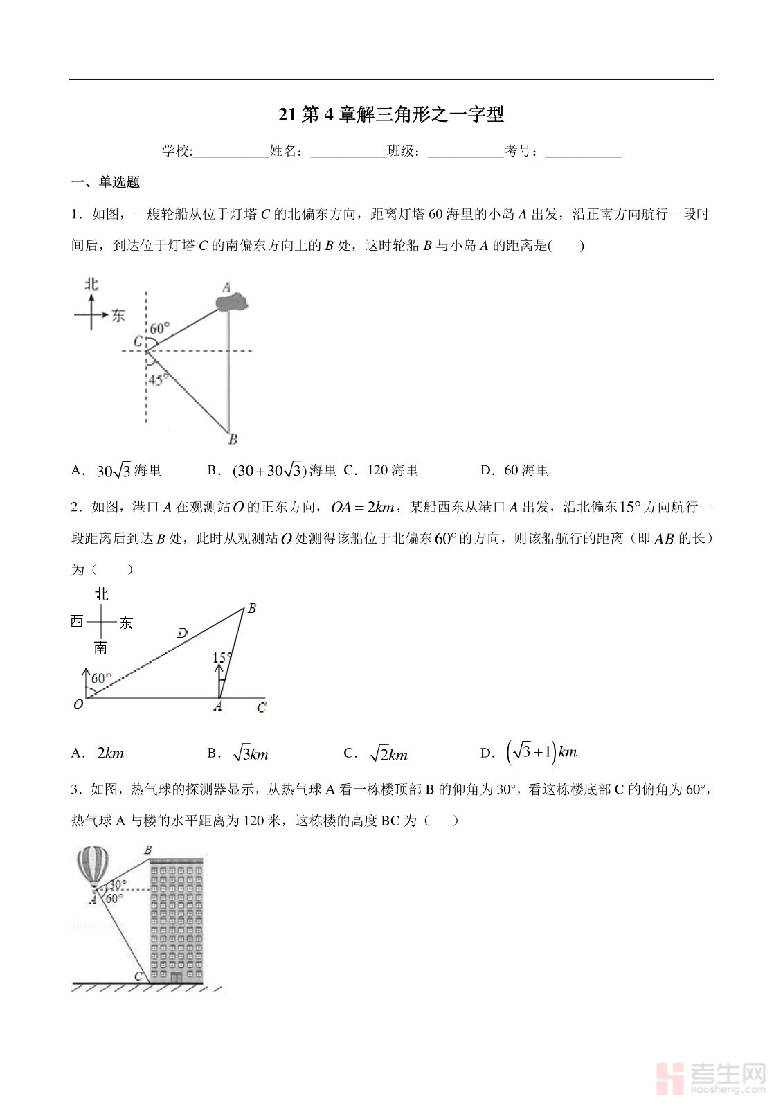 解三角形之一字型- 中考数学解题方法系统训练(全国通用)(原卷版)