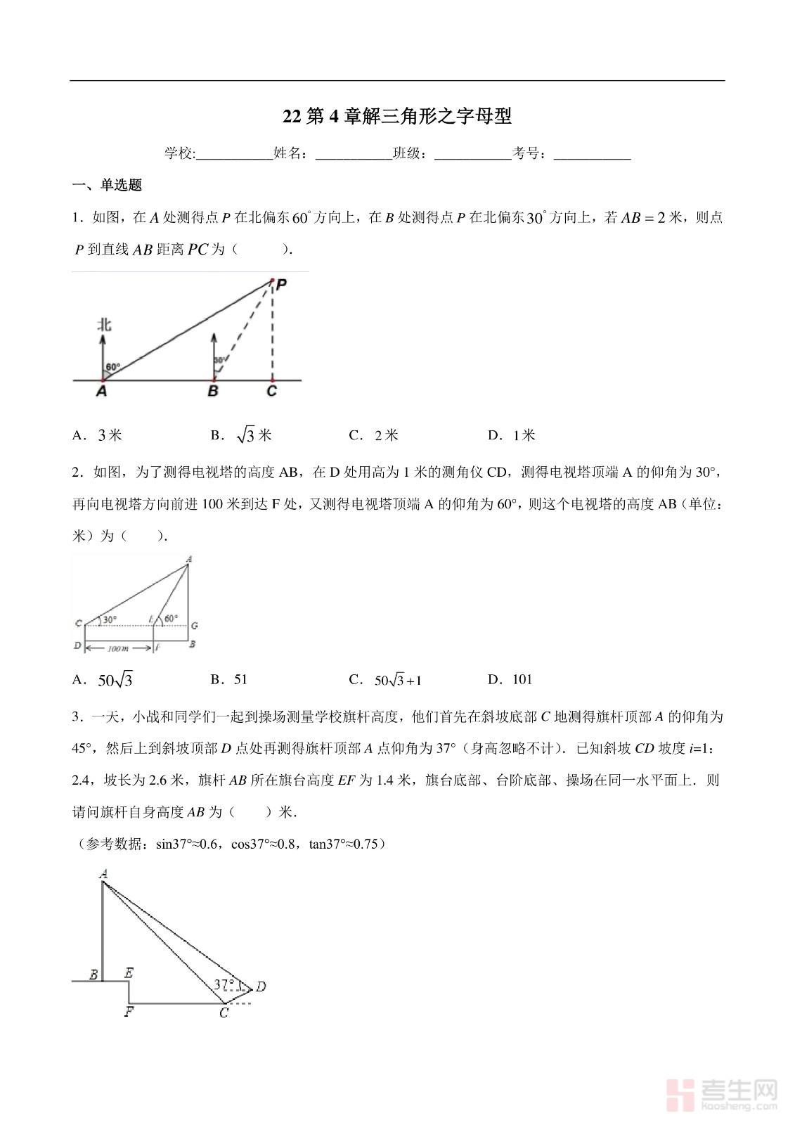 解三角形之字母型- 中考数学解题方法系统训练(全国通用)(原卷版)