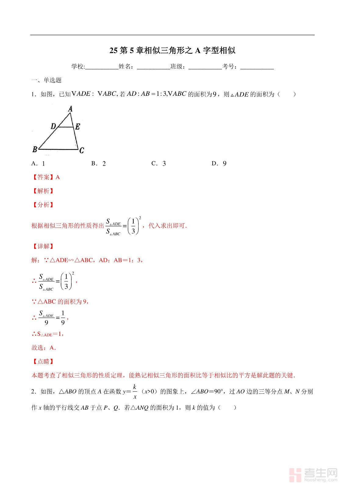 相似三角形之A字型相似- 中考数学解题方法系统训练(全国通用)(解析版)
