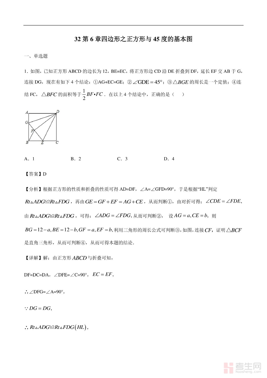 四边形之正方形与45度的基本图-中考数学解题方法系统训练(全国通用)(解析版)
