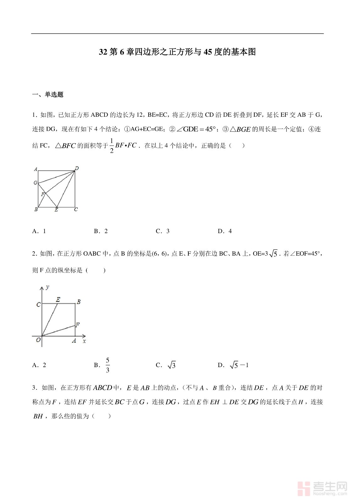 中考数学中,四边形与正方形的知识点是考生们需要重点攻克的部分,而掌握45度角的基本图形将极大提升你的解题效率!今天分享的这份原卷资料,专为中考考生设计,帮助你在考试中游刃有余!