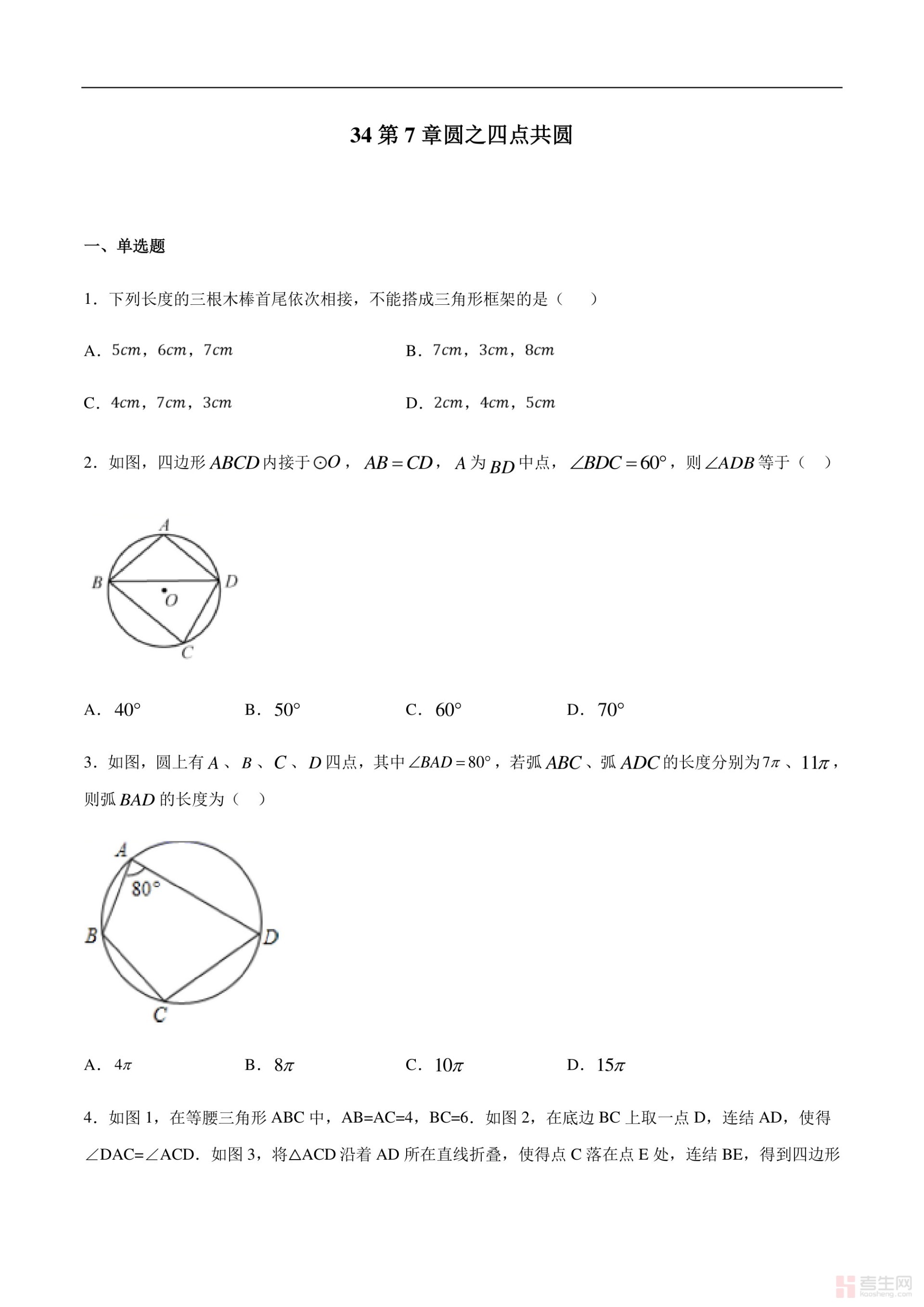 圆与四点共圆的相关题目常常出现在中考数学考试中,掌握这个解题技巧,能帮你在考试中占得先机!今天分享的这份原卷资料,帮助你通过真实的模拟题,提前熟悉考试题型,从容应对中考挑战!