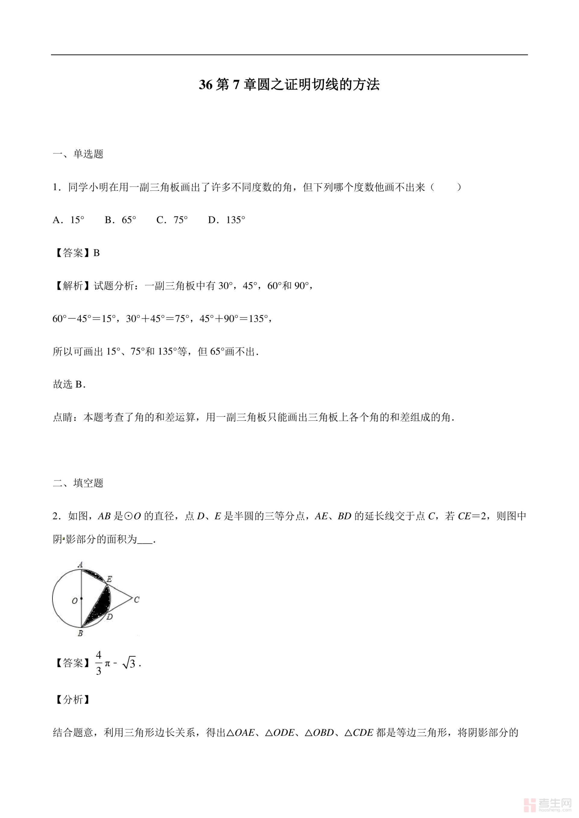 在中考数学中,圆与切线的证明问题经常出现,掌握了这项技能,你会发现相关题目迎刃而解!今天分享的解析版资料,帮助你精准理解切线的证明方法,从而提升解题能力,打好基础,迎接中考挑战!