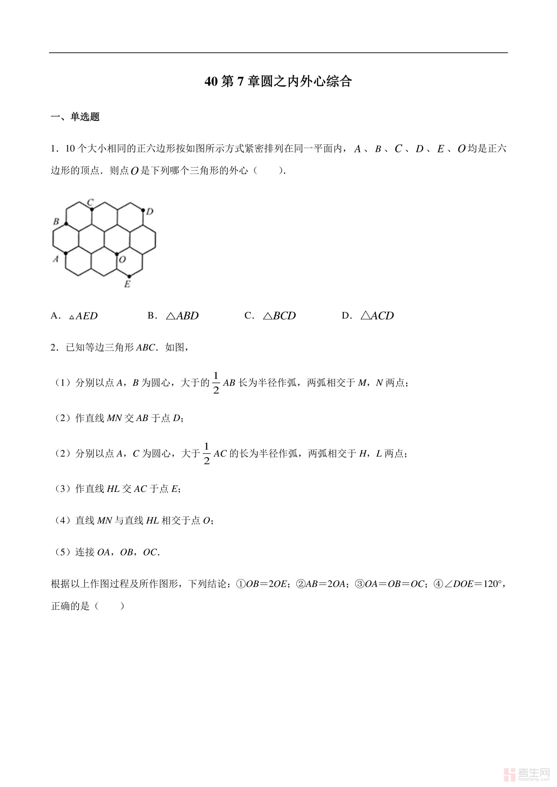 内外心是中考数学中的难点,掌握这一知识点将为你解题加分!今天为大家带来的原卷版资料,通过真实模拟中考题型,帮助你高效备考,提升数学能力!