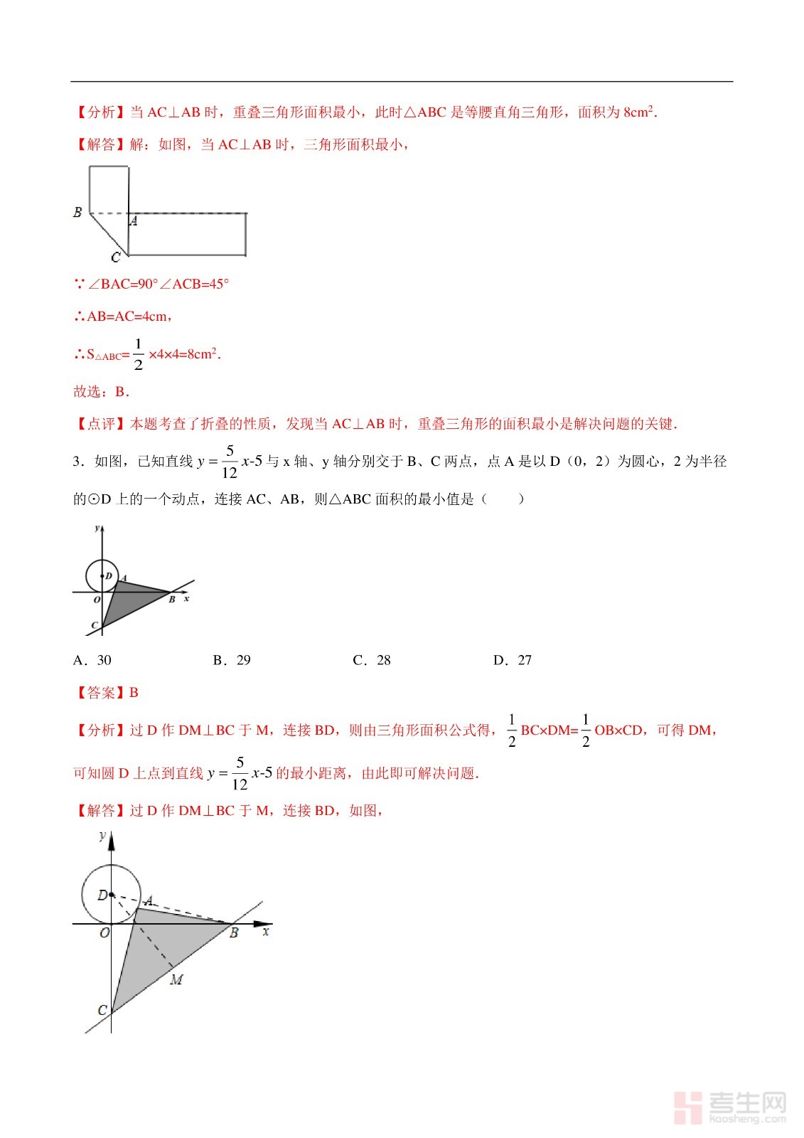 【中考数学必备】几何中的最值问题——三角形的面积解析版来啦!