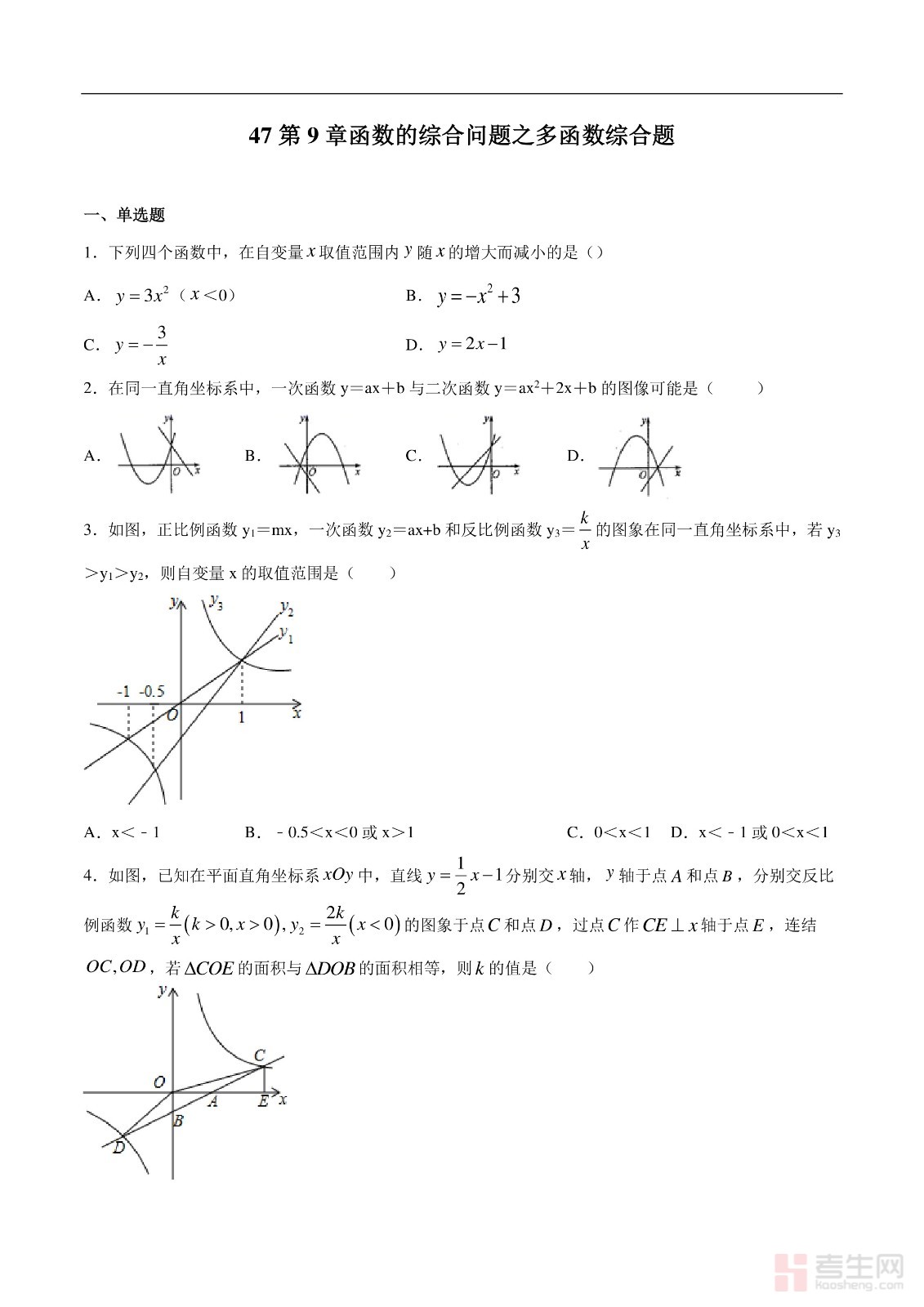 亲爱的学子们,中考在即,数学复习的关键时刻来了!今天给大家分享一份超实用的资料——《函数的综合问题之多函数综合题- 中考数学解题方法系统训练(全国通用)(原卷版)》