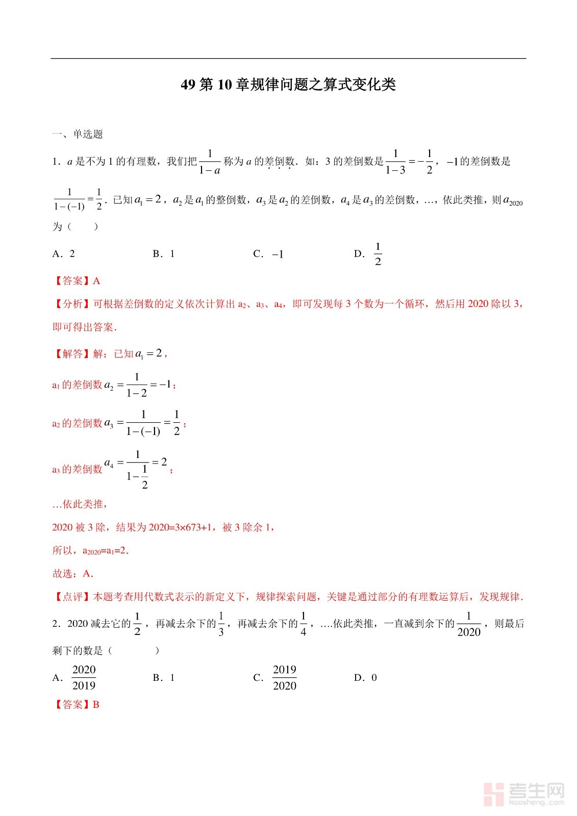 你是否还在为“规律问题之算式变化类”而头疼?别担心!我们推出了《规律问题之算式变化类- 中考数学解题方法系统训练(全国通用)(解析版)》,帮助你轻松攻克难点,提升解题能力!