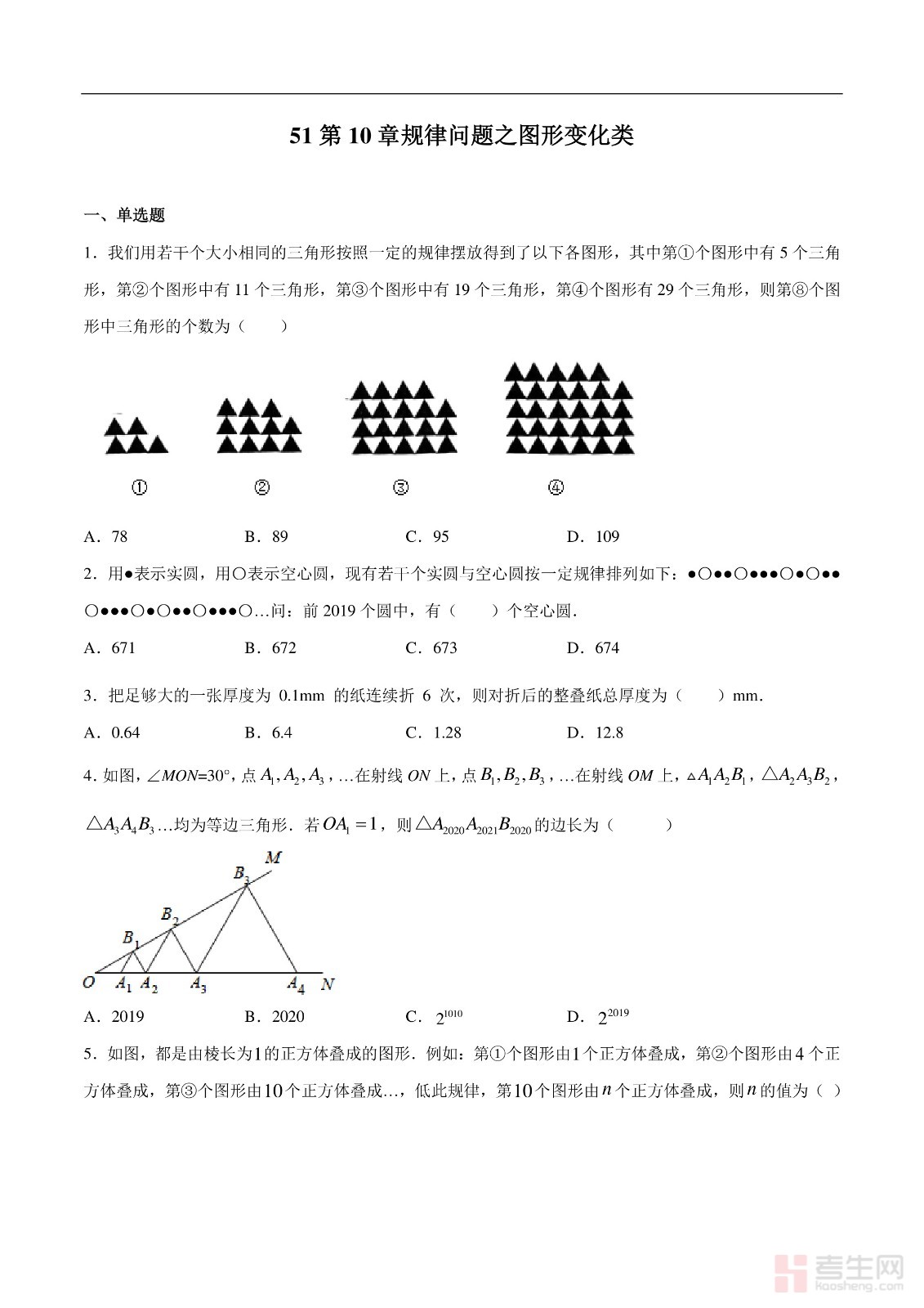 中考数学的难点,图形变化类问题你掌握了吗?这份“规律问题之图形变化类- 中考数学解题方法系统训练(全国通用)(原卷版)”资料,专为考生们量身打造!