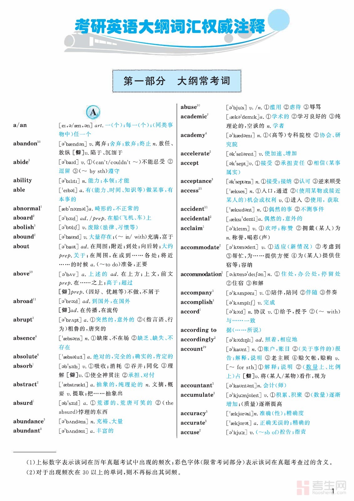 考研英语大纲词汇词频版及大纲常考词资料的说明: