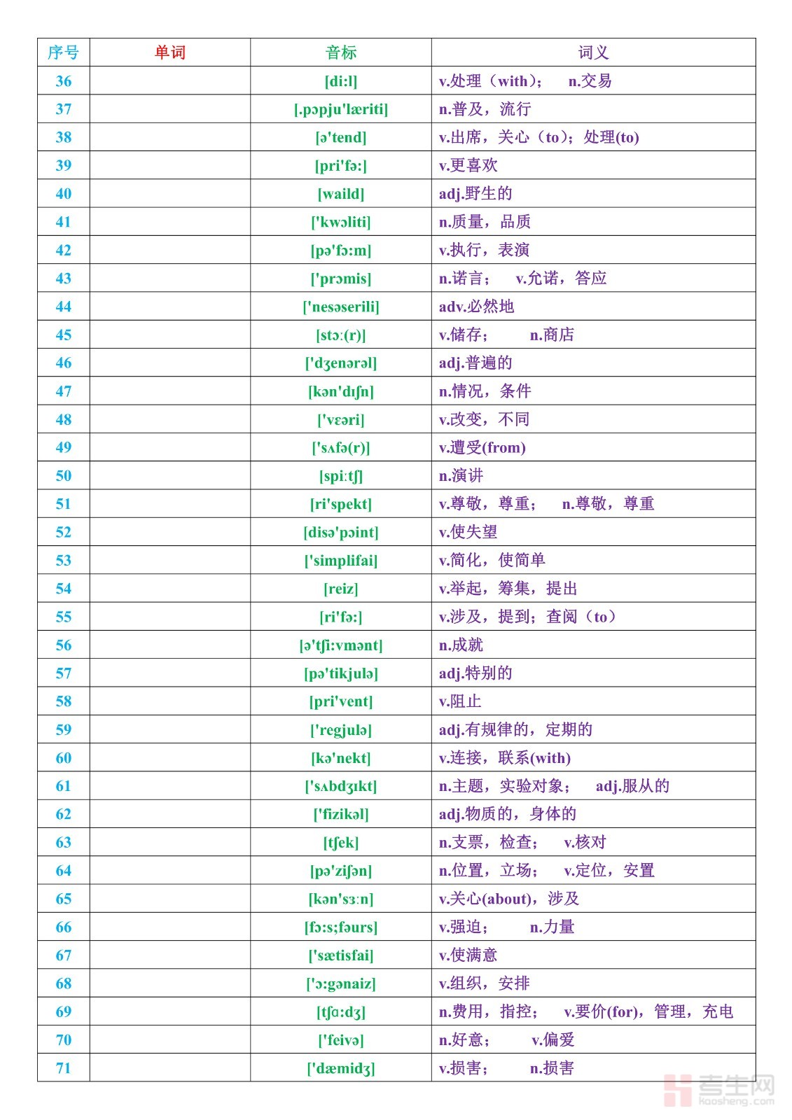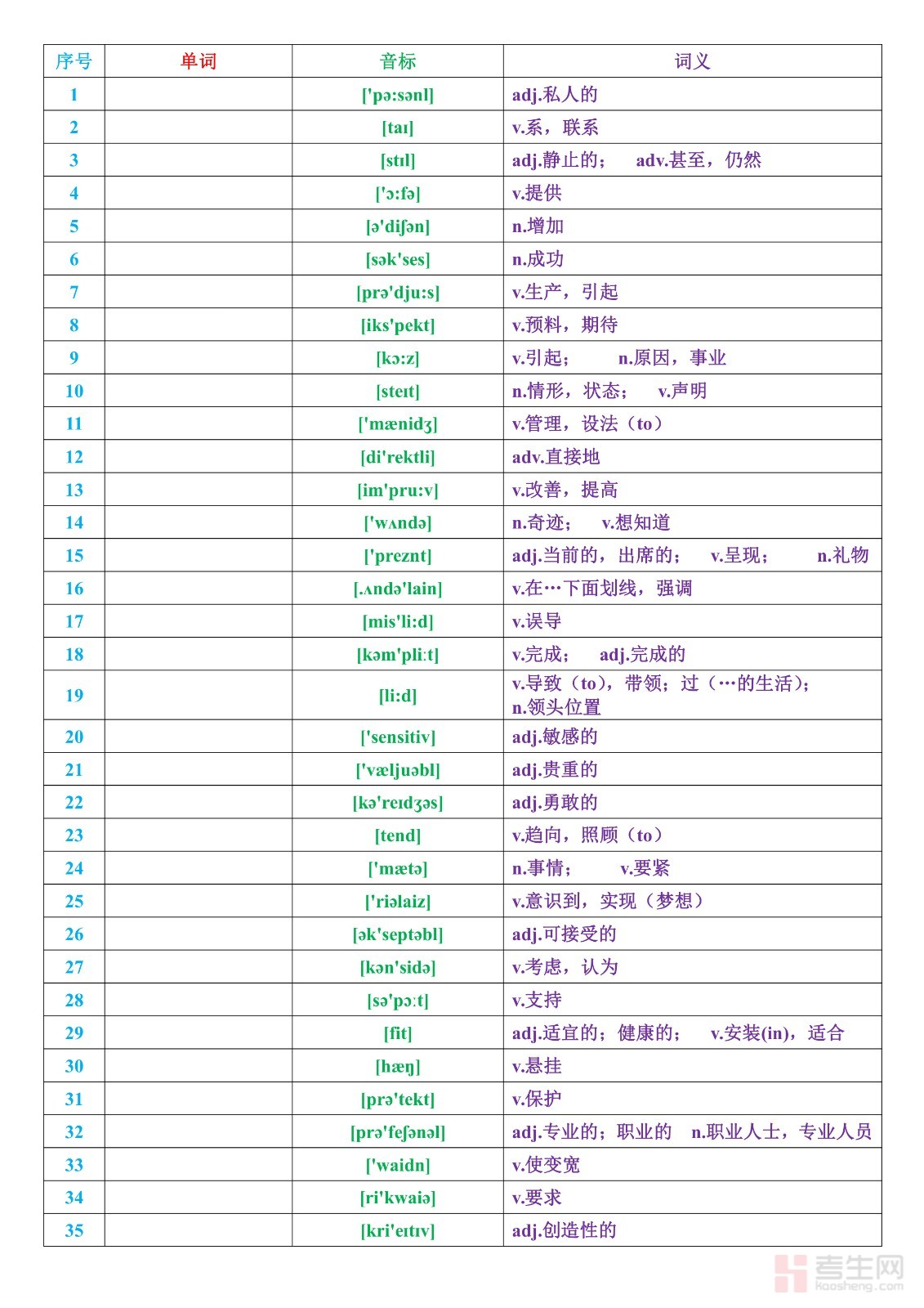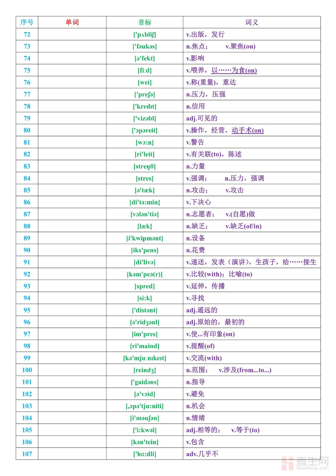 汉英默写表(汉默英),根据汉语默写英语单词表格,彩色版可打印