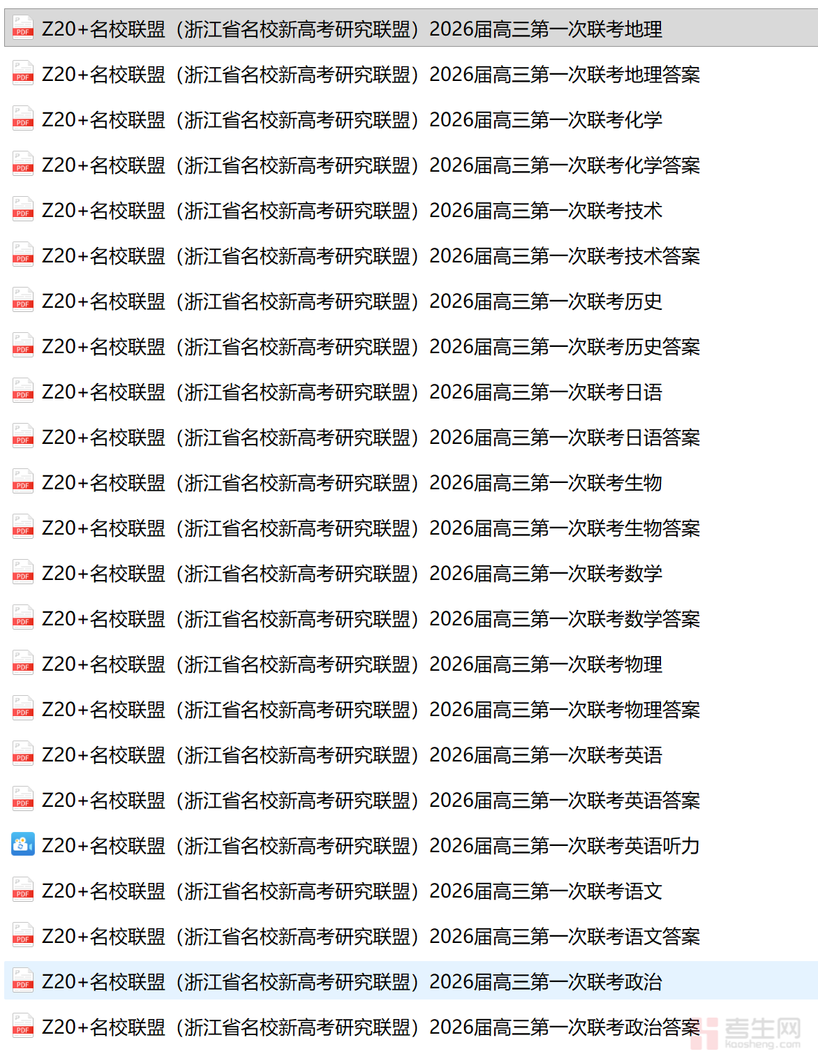 名校联盟(浙江省名校新高考研究联盟)2026届高三第一次联考语文数学英语物理化学生物历史地理政治共9科试题及答案