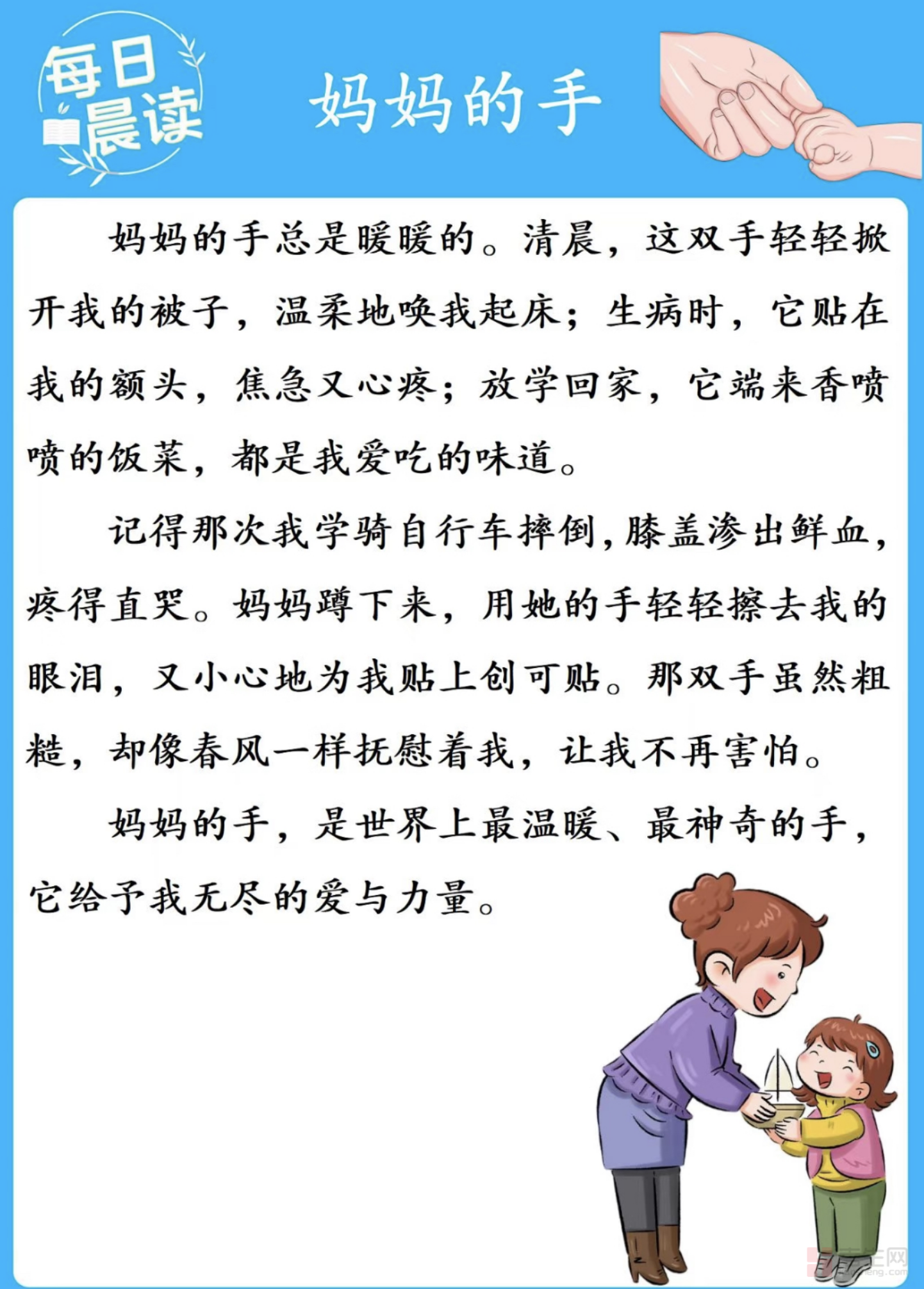 《妈妈的手》晨读 + 练笔资料,以文字传递掌心的温暖与爱
