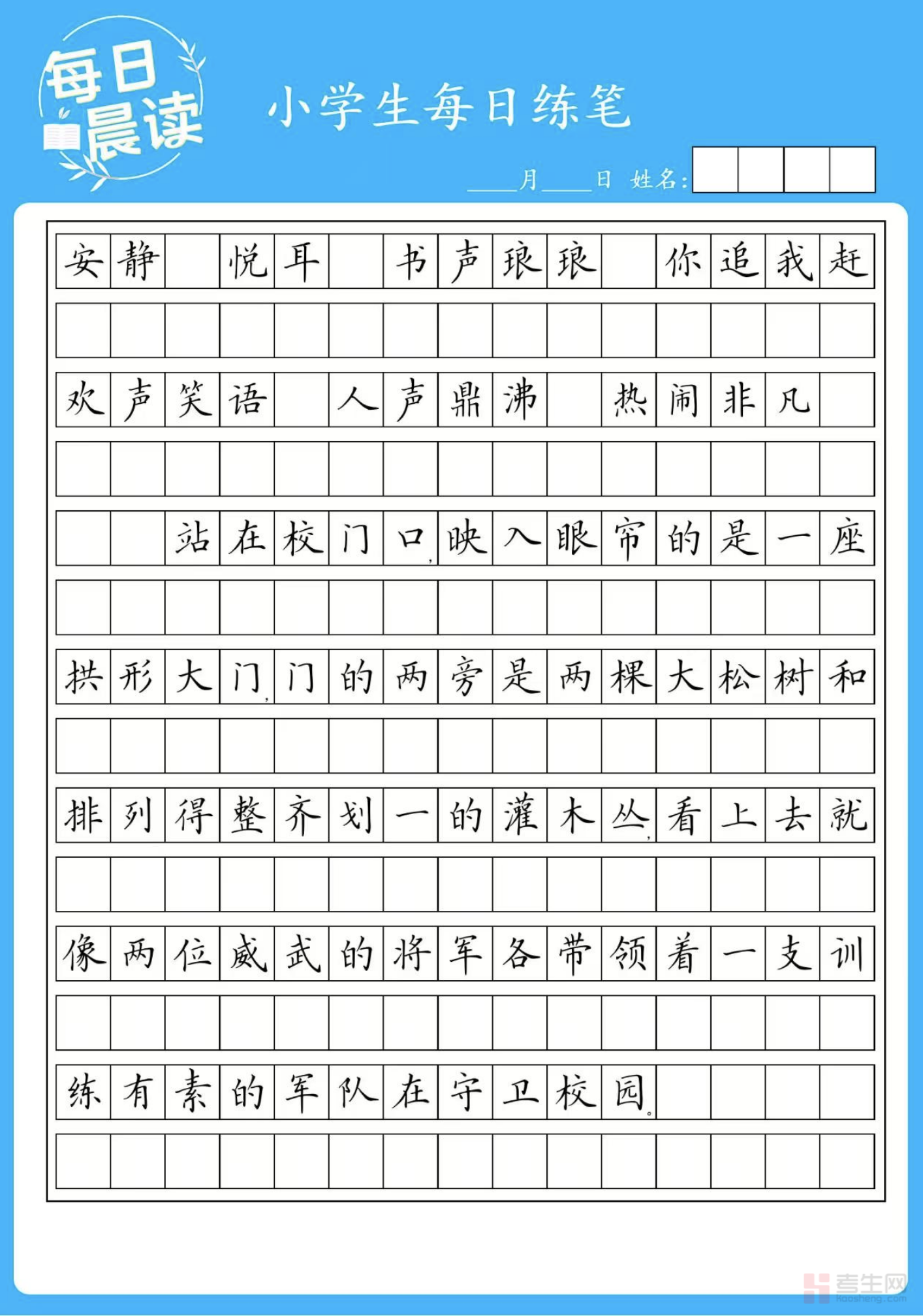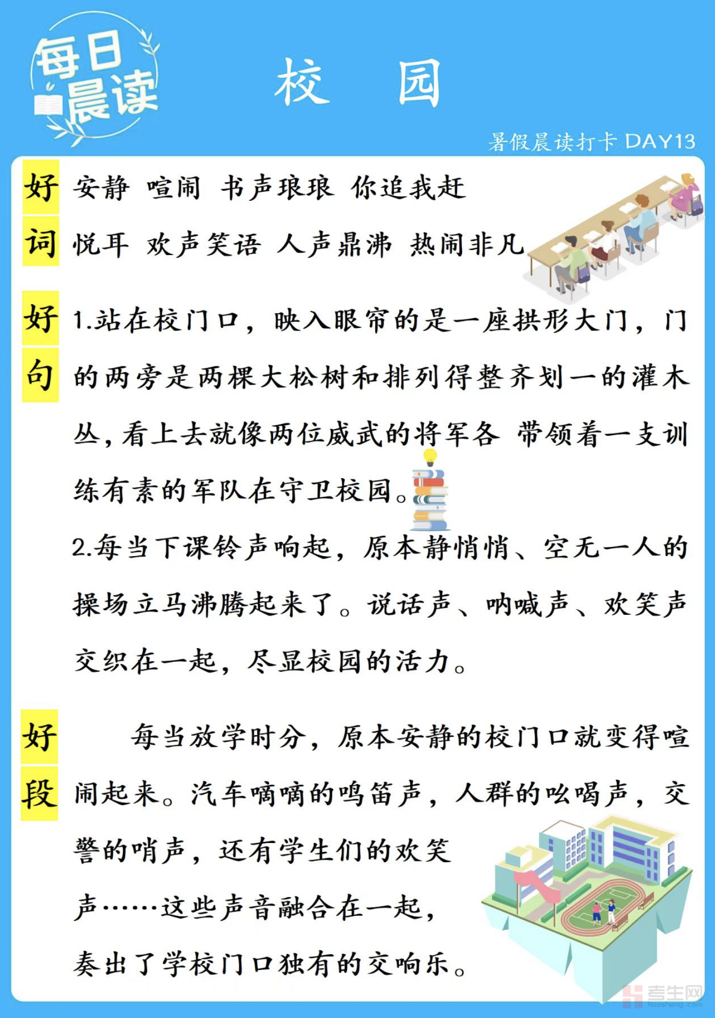 别再错过这份满含青春温情与成长记忆的优质资料!现在就登录考生网,下载《校园》晨读 + 练笔资料,让每一段文字都盛满校园的青春活力,让每一次练笔都成为与青春、与成长的温柔邂逅!