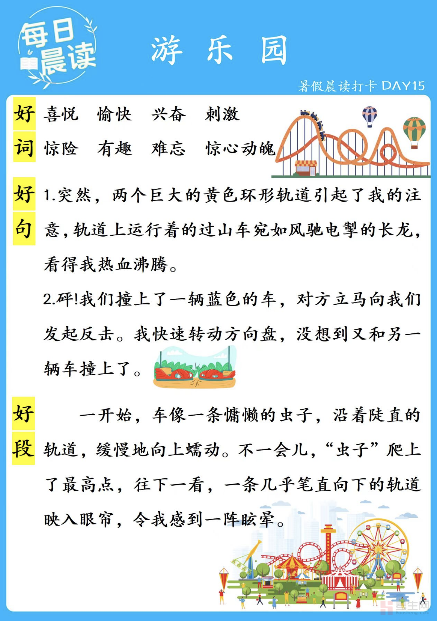 《游乐园》晨读 + 练笔资料,用文字珍藏游乐园里的欢乐与时光