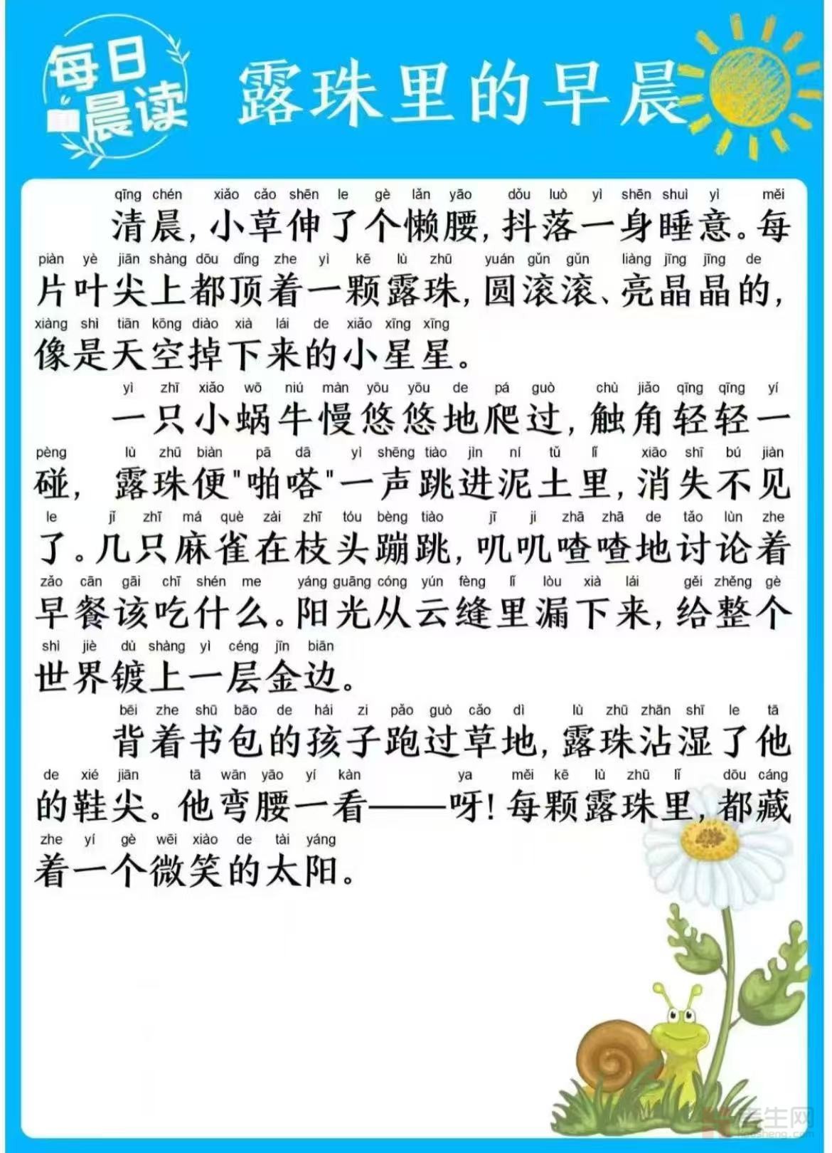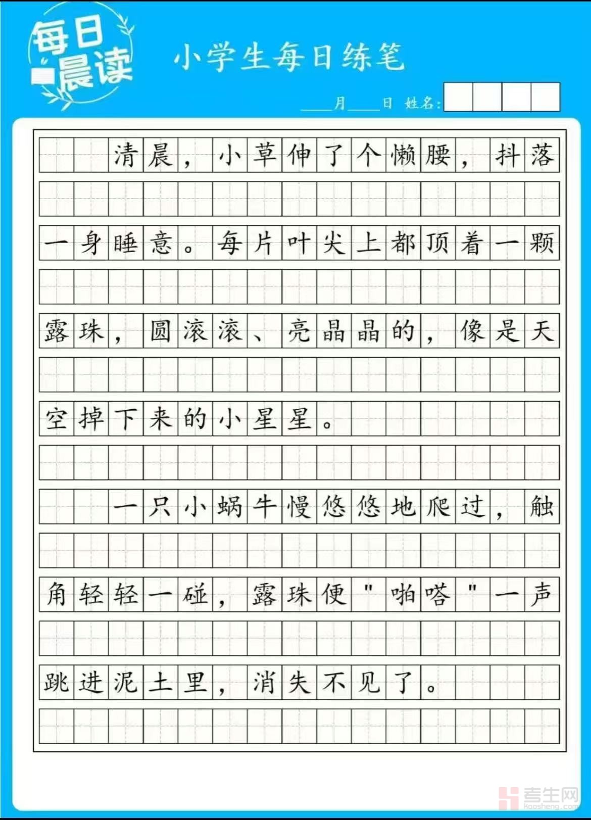 别再错过这份满含晨光与露珠诗意的优质资料!现在就登录考生网,下载《露珠里的早晨》晨读 + 练笔资料,让每一段文字都盛满露珠的清新,让每一次练笔都成为与清晨、与美好时光的温柔邂逅!