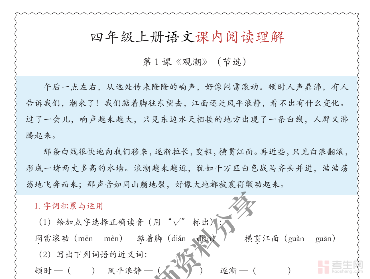 各类可下载学习资料,在考生网均可免费下载!考生网,考生的资料一网打尽!请将本网页转发给需要的考生以及考生家长!
