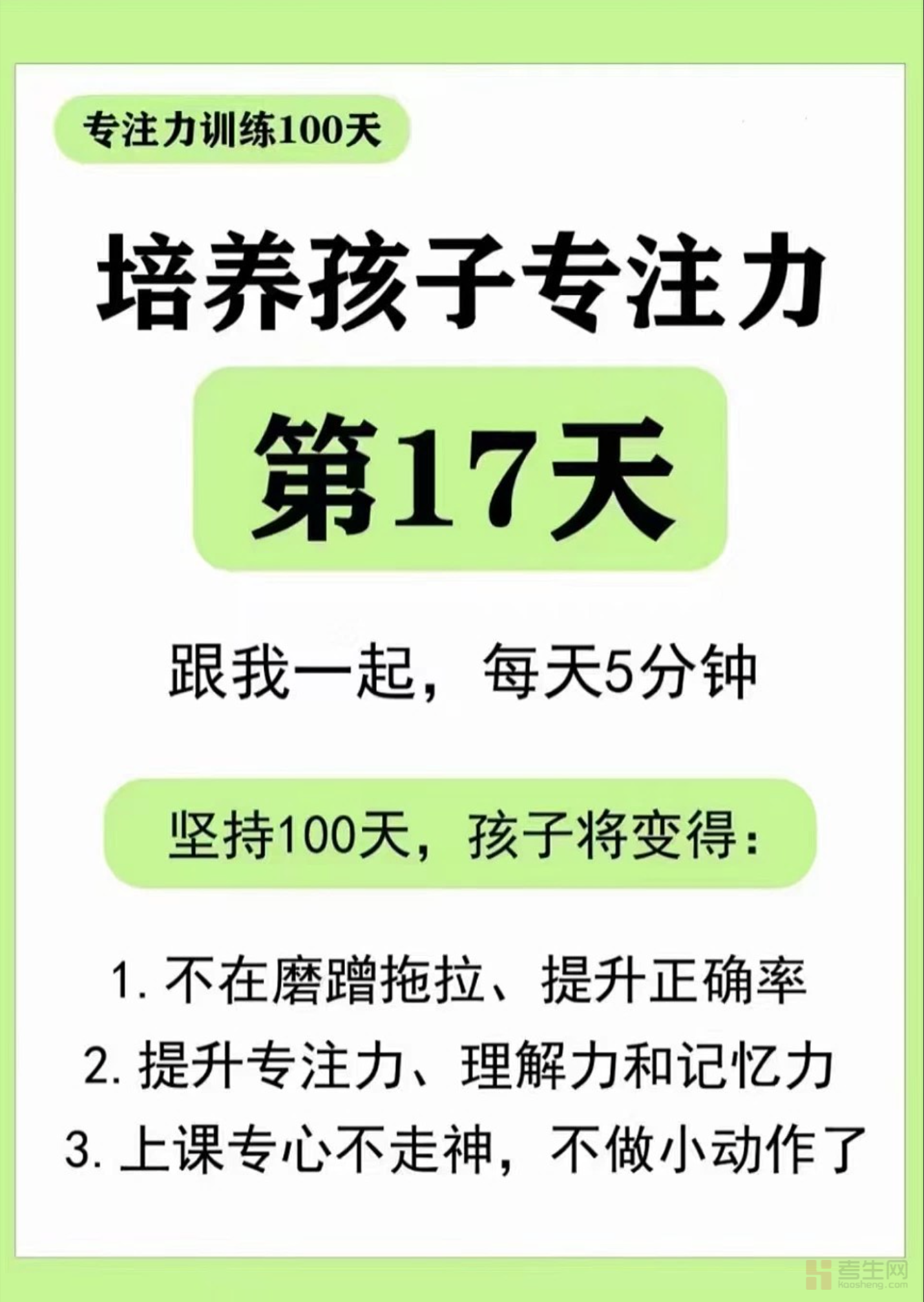 老师每天都会分享这套专注力训练,有助于孩子更好的掌握学习重点!