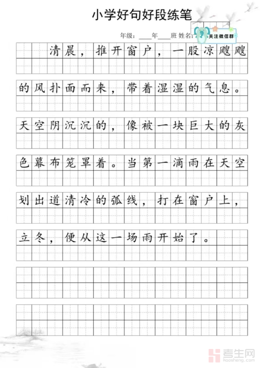 别再错过这份满含节气韵味与生活温情的优质资料!现在就登录考生网下载,让每一次练笔都成为与立冬、与冬日的温柔邂逅!